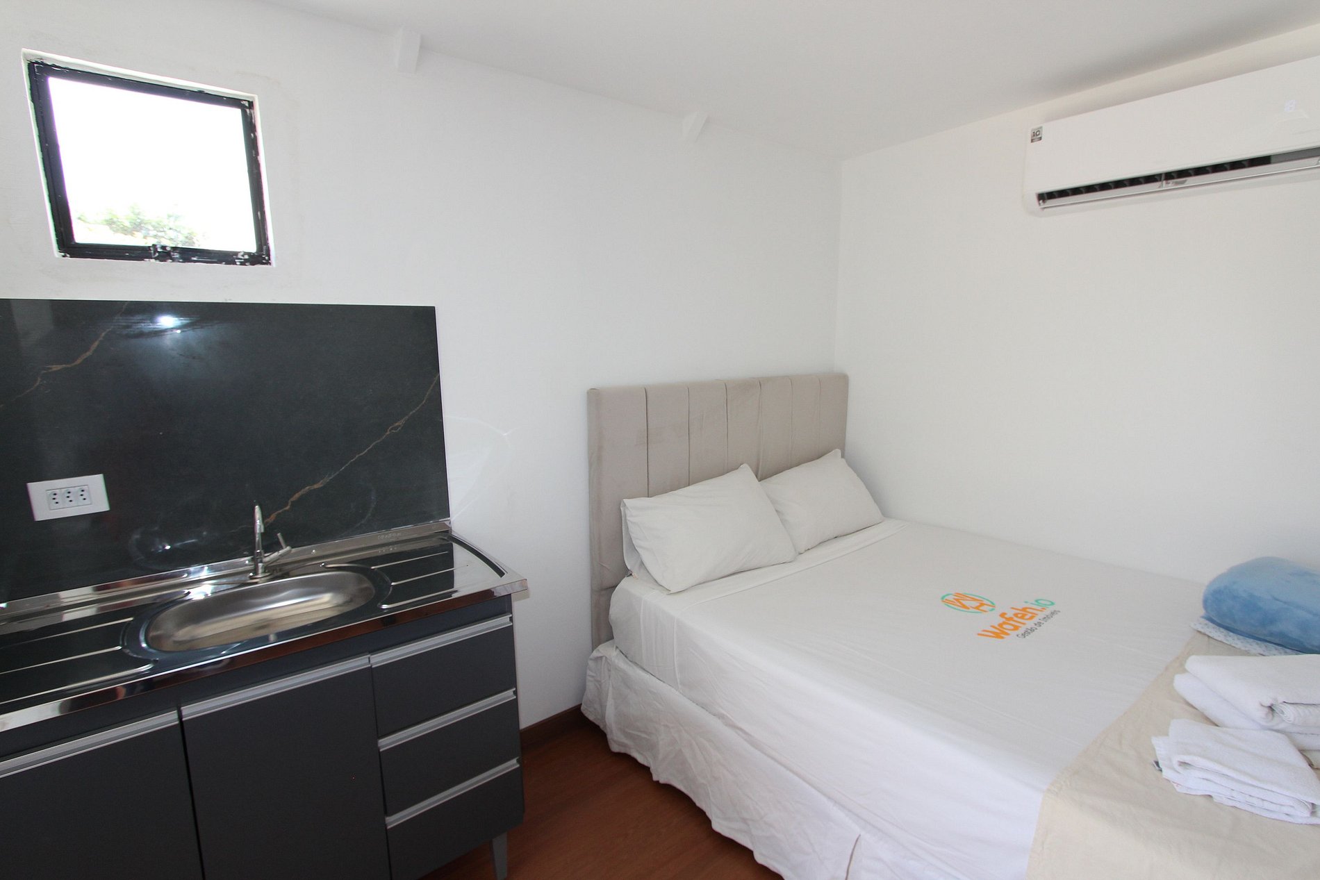 Quarto confortável, com roupas de cama inclusas, bem como acesso à rede Wi-Fi.