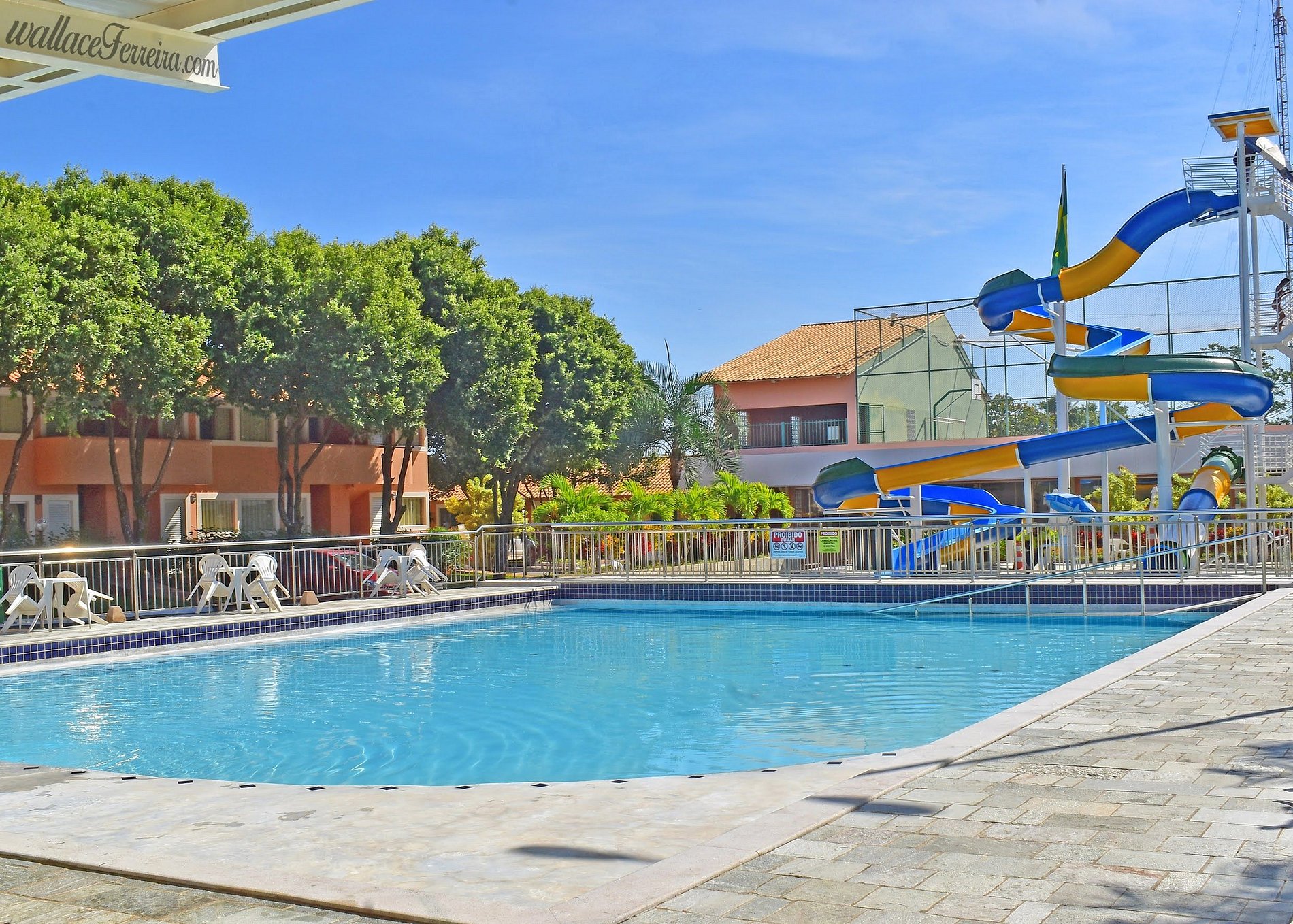 Melhores apartamentos de Caldas Novas, com cozinha completa, estacionamento, e obras de arte. O parque aquático do Fiori possuí água quente de verdade direto do poço, com várias piscinas, sauna, bar e toboágua.