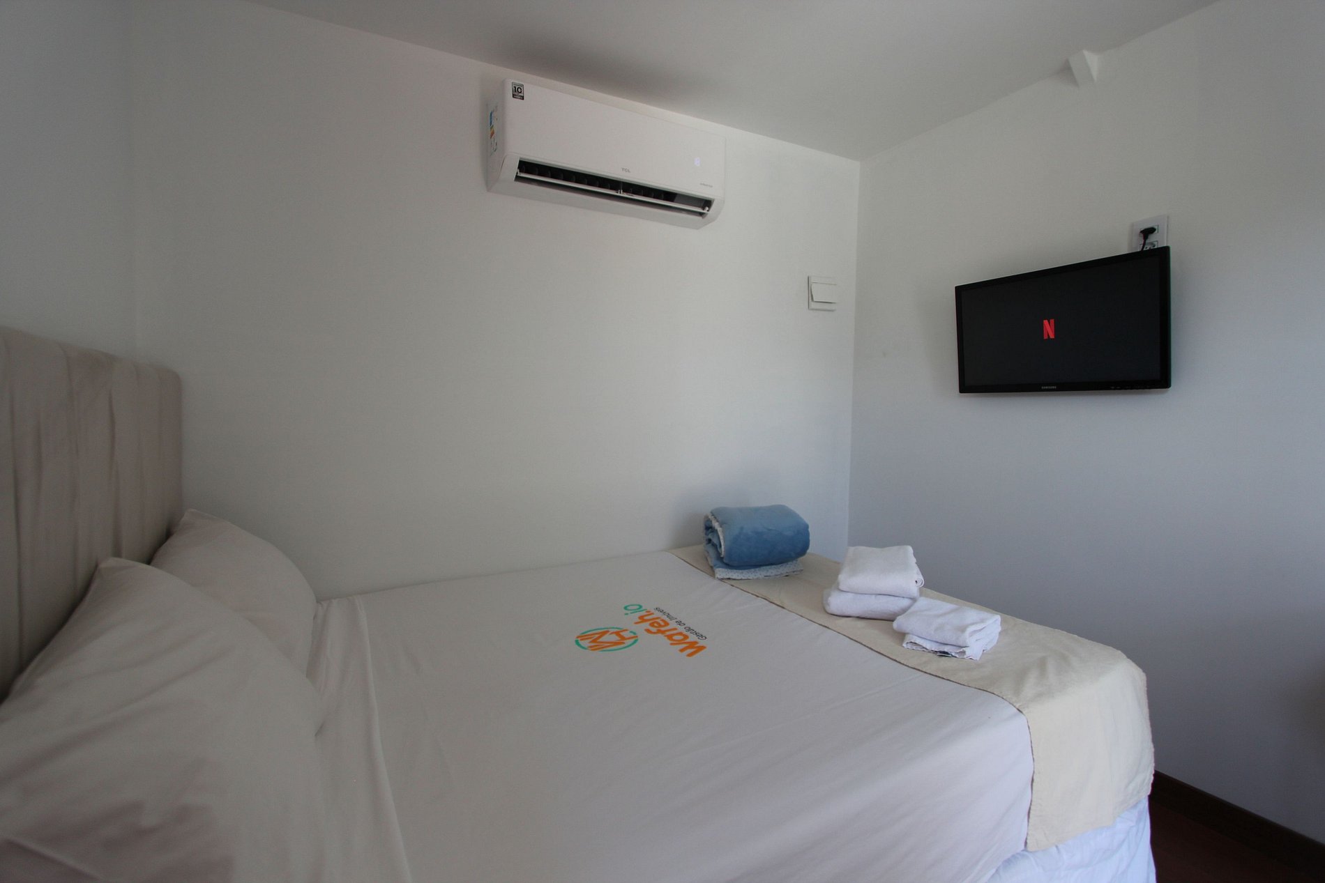 Quarto confortável, com roupas de cama inclusas, bem como acesso à rede Wi-Fi.