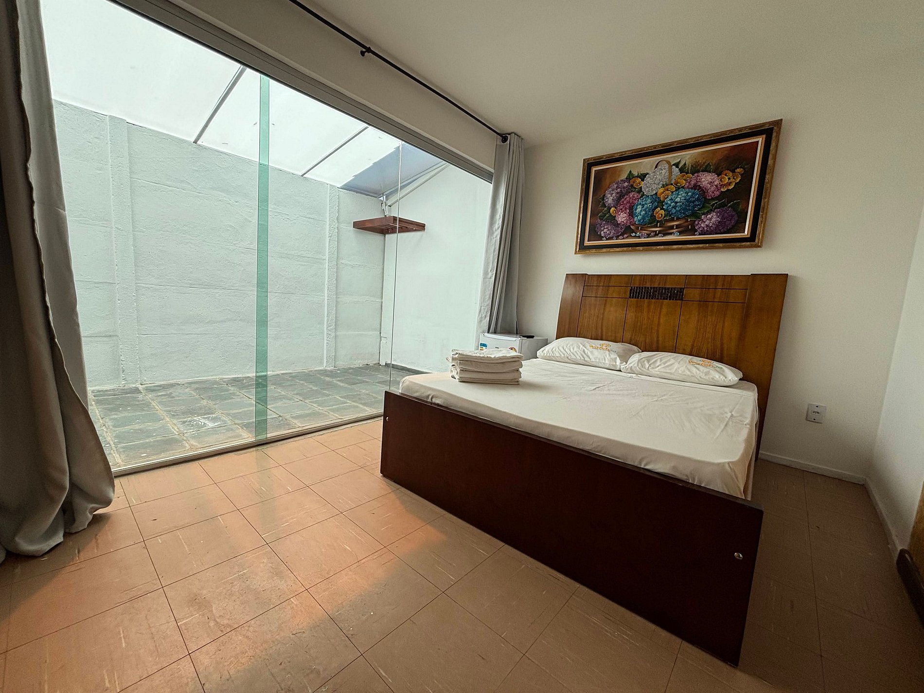 Nosso quarto é um refúgio aconchegante com cama de casal, acomodando até 2 hóspedes com conforto. Equipado com ar-condicionado, roupas de cama macias e Wi-Fi gratuito, garante noites perfeitas. A pousada oferece piscina, jardim e sala com vista para a lagoa. Relaxe e sinta-se em casa! Nota: O banheiro é compartilhado, mantido impecável para seu conforto. Viva a magia da Pampulha!