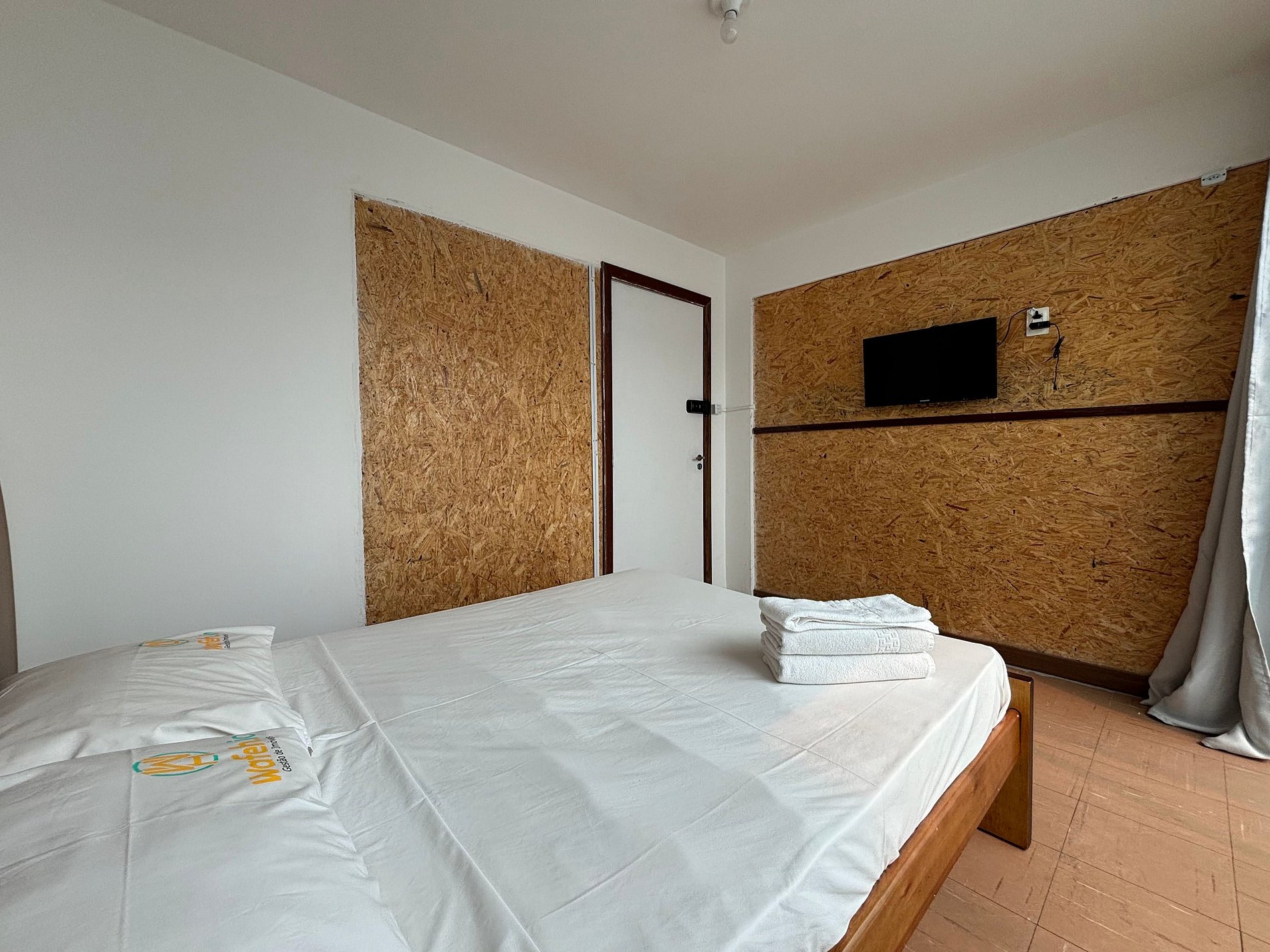 Quarto confortável, com roupas de cama inclusas, bem como acesso à rede Wi-Fi.